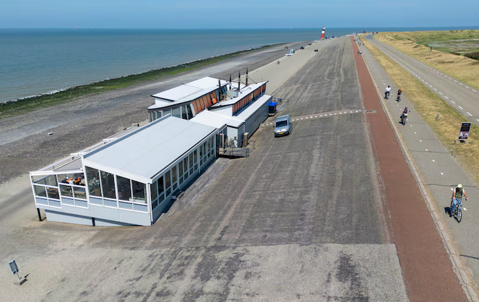 Dijkpaviljoen De Westkaap is a seafood restaurant located on the sea dike in Westkapelle, at the westernmost point of Walcheren. It is well-regarded for its panoramic views of the North Sea and passing ocean vessels